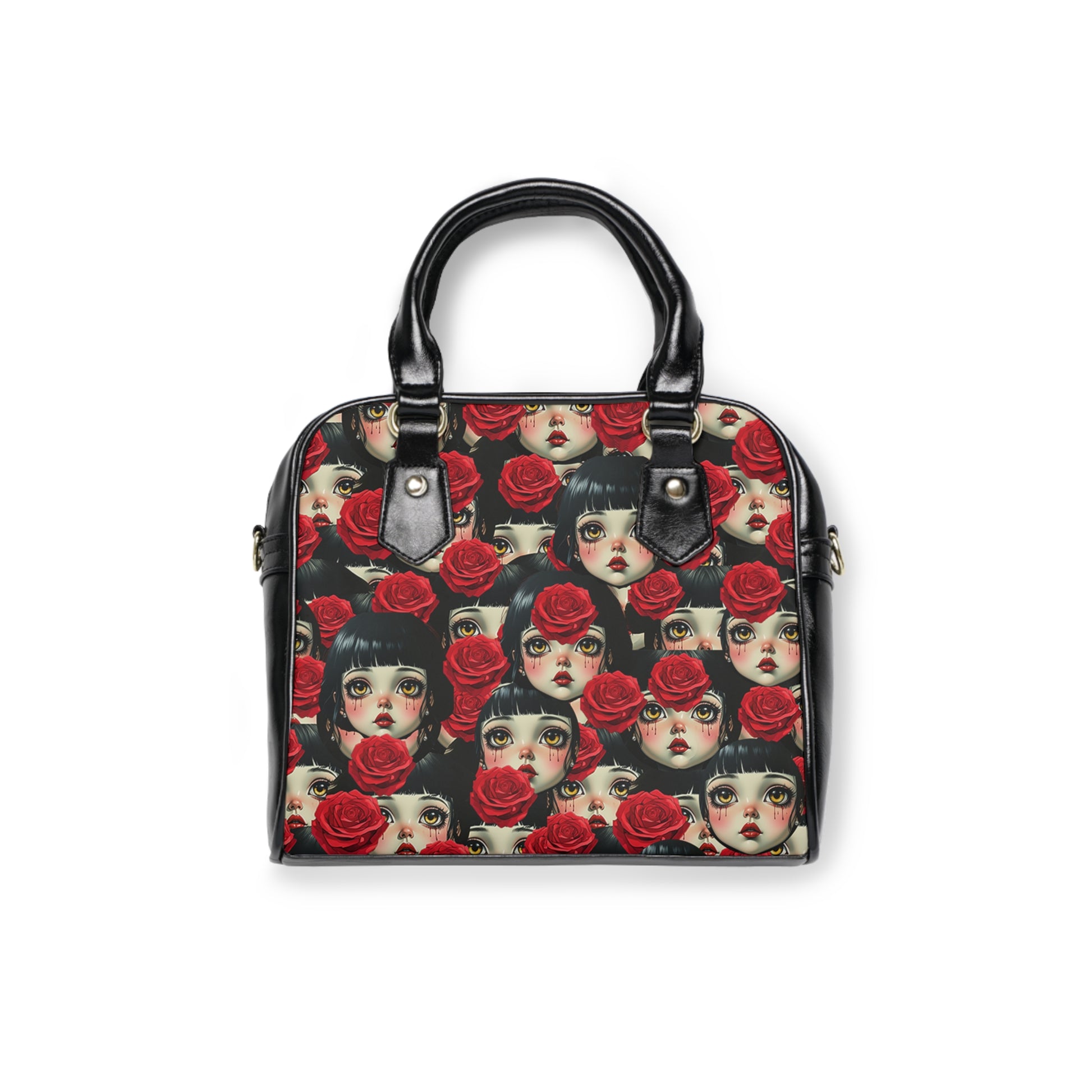 Rose Doll Face Shoulder Handbag — Gothic Vintage Floral Pattern Tote