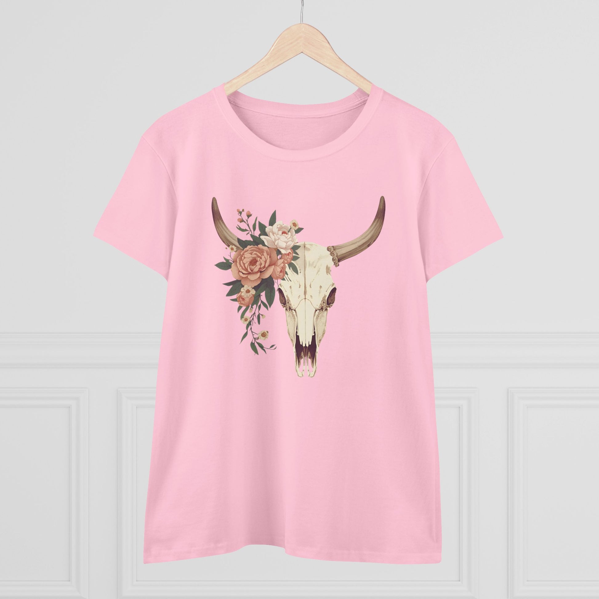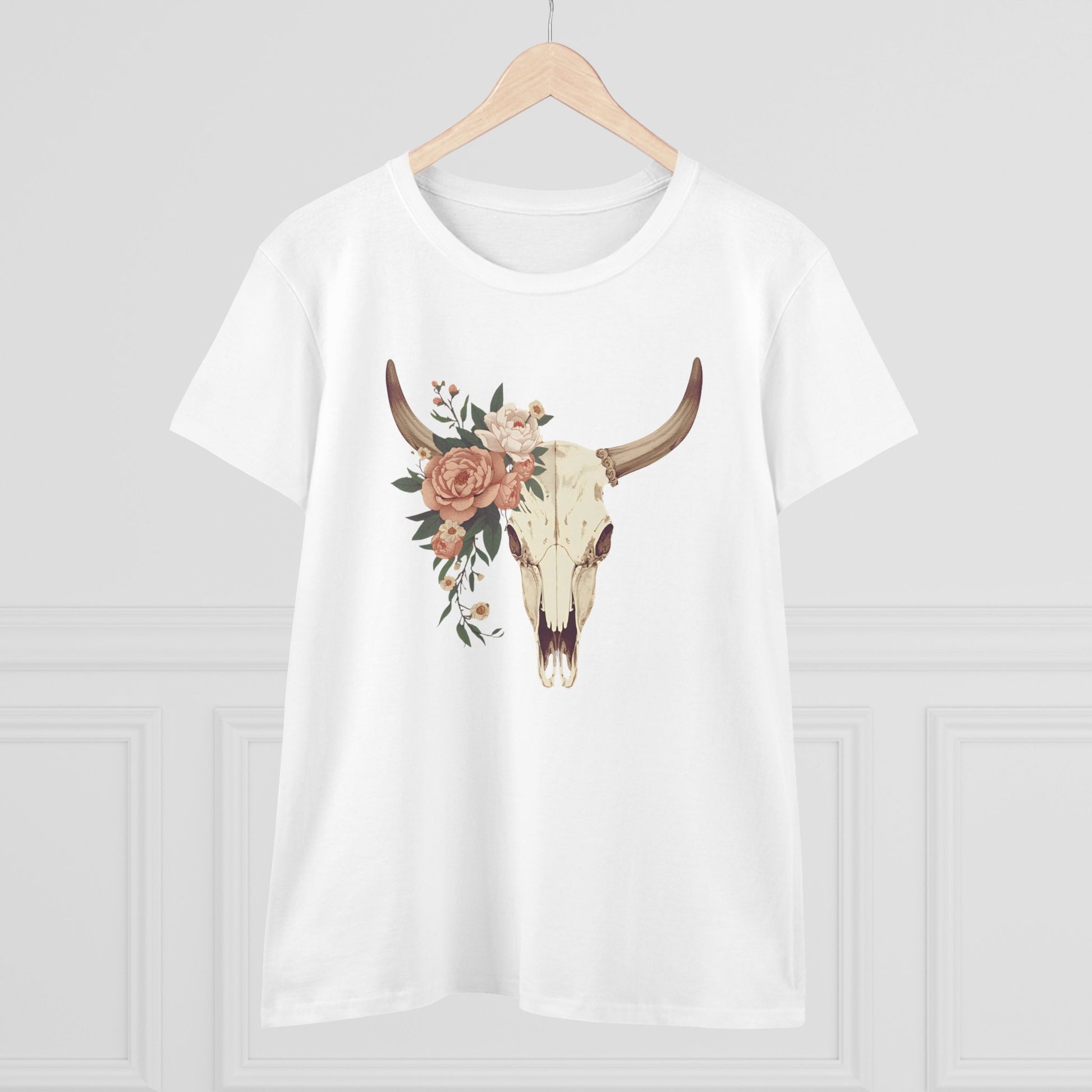 Women's Floral Cow Skull Tee — Boho Southwestern Graphic T-Shirt